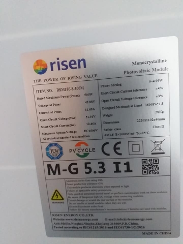Tấm pin năng lượng mặt trời Risen model: RSM150-8-500M là tấm pin đơn tinh thể (mono) sử dụng 150 cell thay vì 144 cell như trước đây giúp tăng hiệu quả hấp thụ bức xạ mặt trời cụ thể là hiệu suất tấm pin đã lên đến tới 20.6%